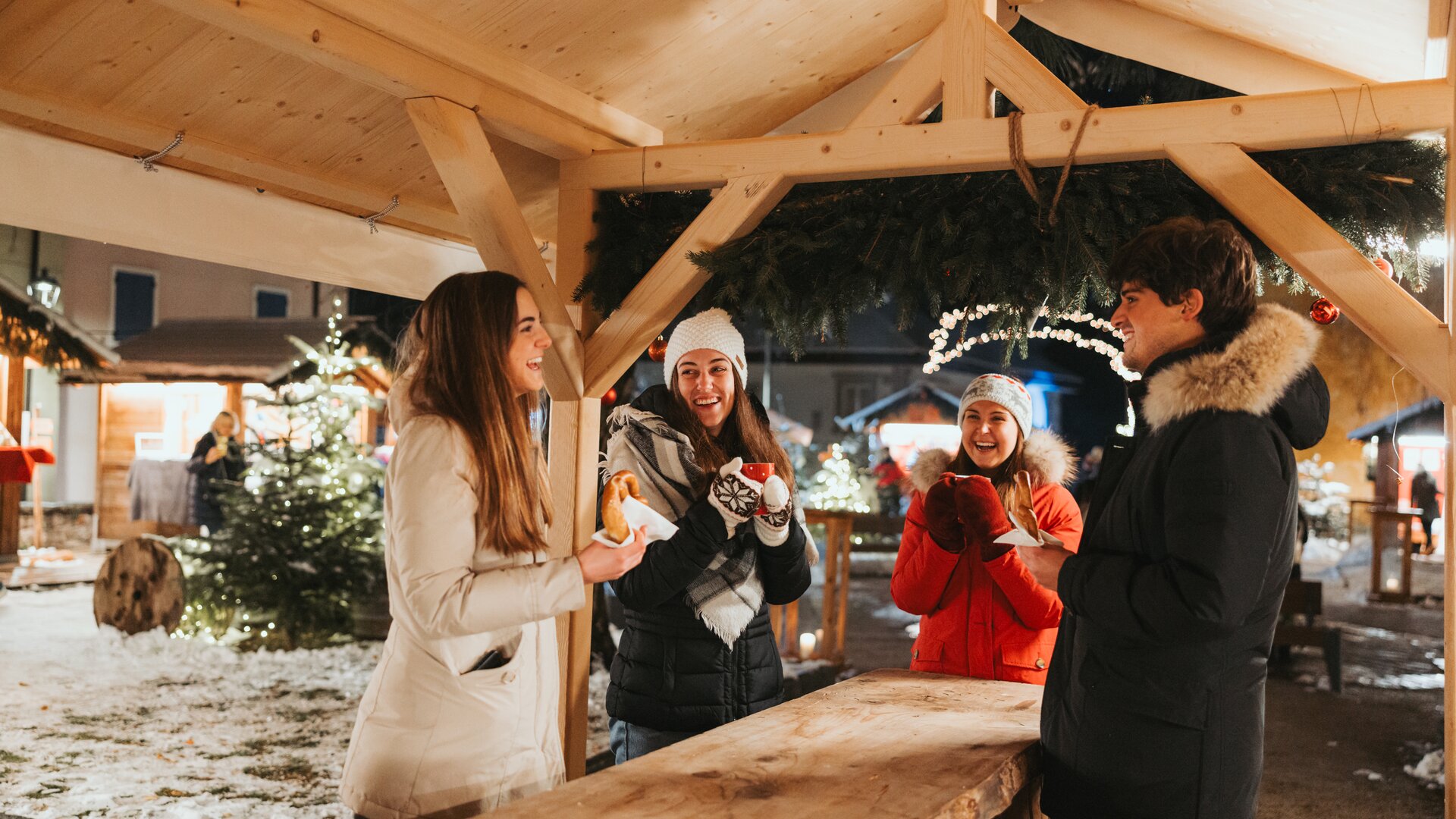 Quanto è romantico il Mercatino dopo una giornata di sci! Fra le romantiche casette di legno potrai curiosare fra pantofole di lana cotta, cose di casa dal sapore antico, spiedini caramellati, formaggi prelibati e tentazioni della tradizione, potrai riscaldarti con bevande dolci e speziate e pensare a doni speciali e unici. In Val di Fiemme il dono più prezioso è la tranquillità, il silenzio della sera, i suoni ovattati dalla neve, il calore dell'accorglienza, tutto questo e molto altro ti aspetta per una vacanza di Natale.