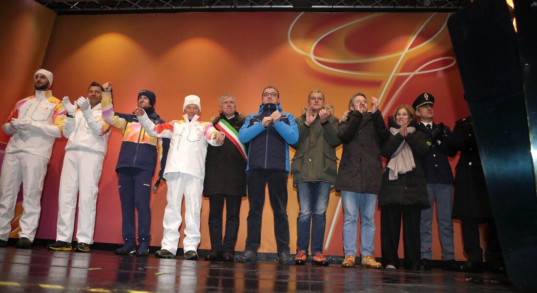 A Cavalese l’attesa per l’arrivo di Franco Nones in veste di ultimo tedoforo è cominciata nel tardo pomeriggio, con attività e intrattenimenti che hanno scaldato una Piazza Verdi gremita, dove gli occhi di tutti sono andati al braciere olimpico posizionato sul palco. Verso le 19.30 l’arrivo di Nones è stato accolto da un fortissimo applauso del pubblico, che ha assistito festante al momento più importante della giornata: l’accensione del braciere olimpico. Al suo fianco Cristian Zorzi e Amos Mosaner sono stati raggiunti da alcune figure istituzionali tra cui il presidente della Provincia autonoma di Trento Maurizio Fugatti, che a seguire ha dichiarato: “l’emozione di essere sul palco con la fiamma Olimpica è grande, così come essere al fianco di grandi campioni a partire da Franco Nones, una delle figure più importanti per lo sport italiano”.