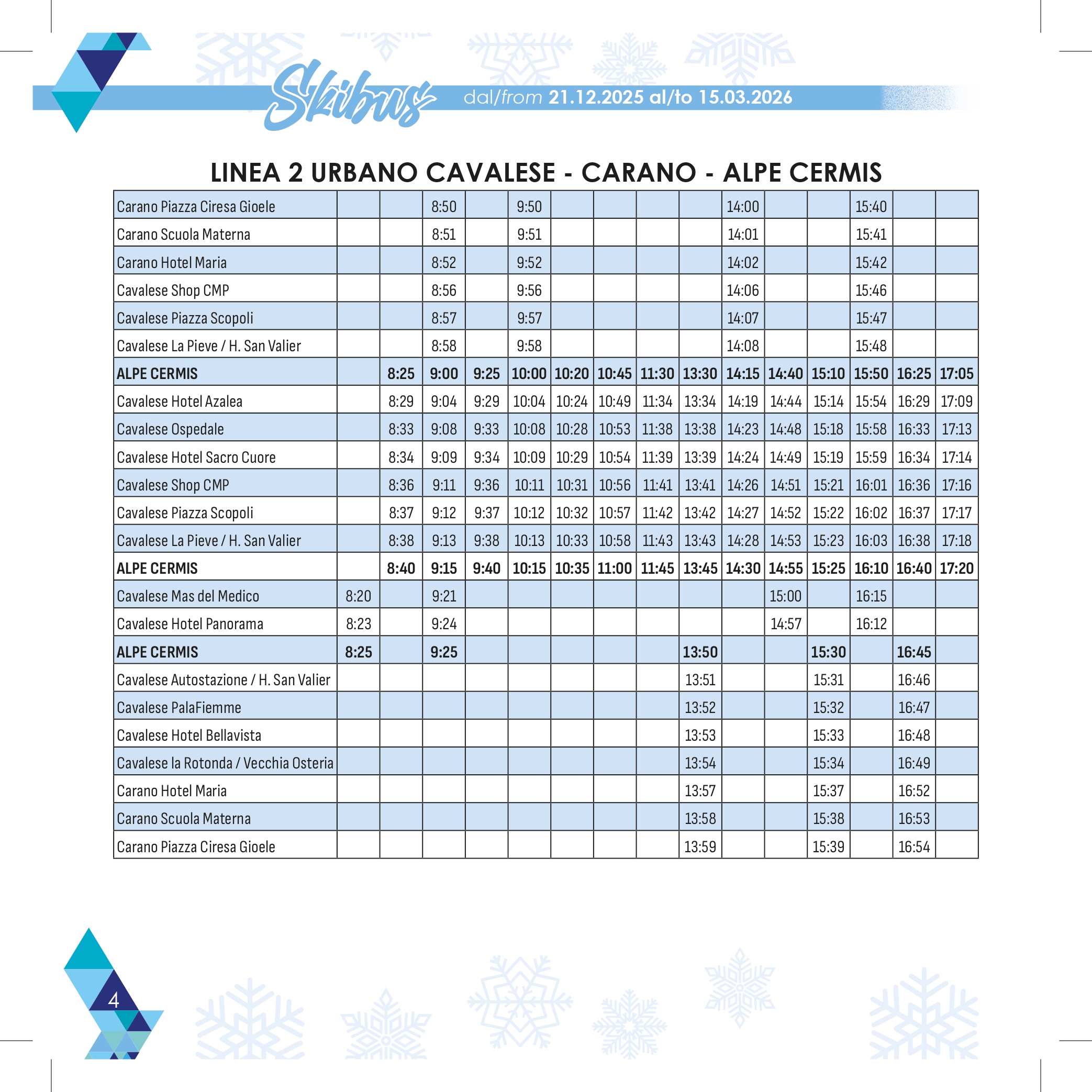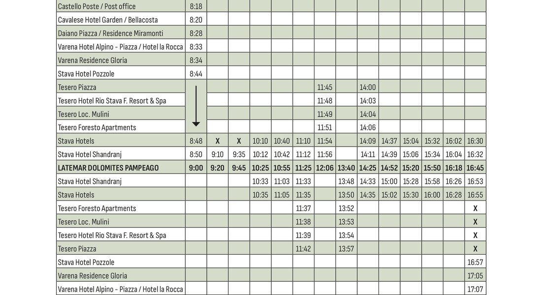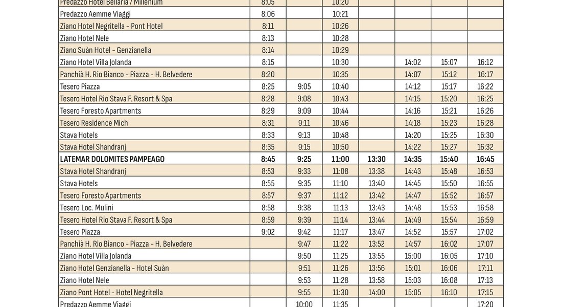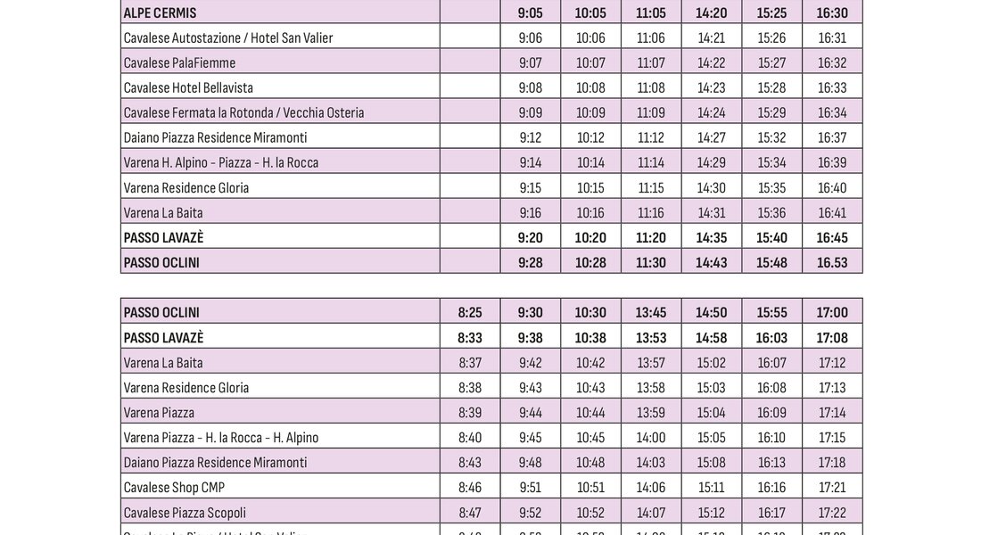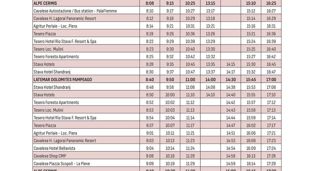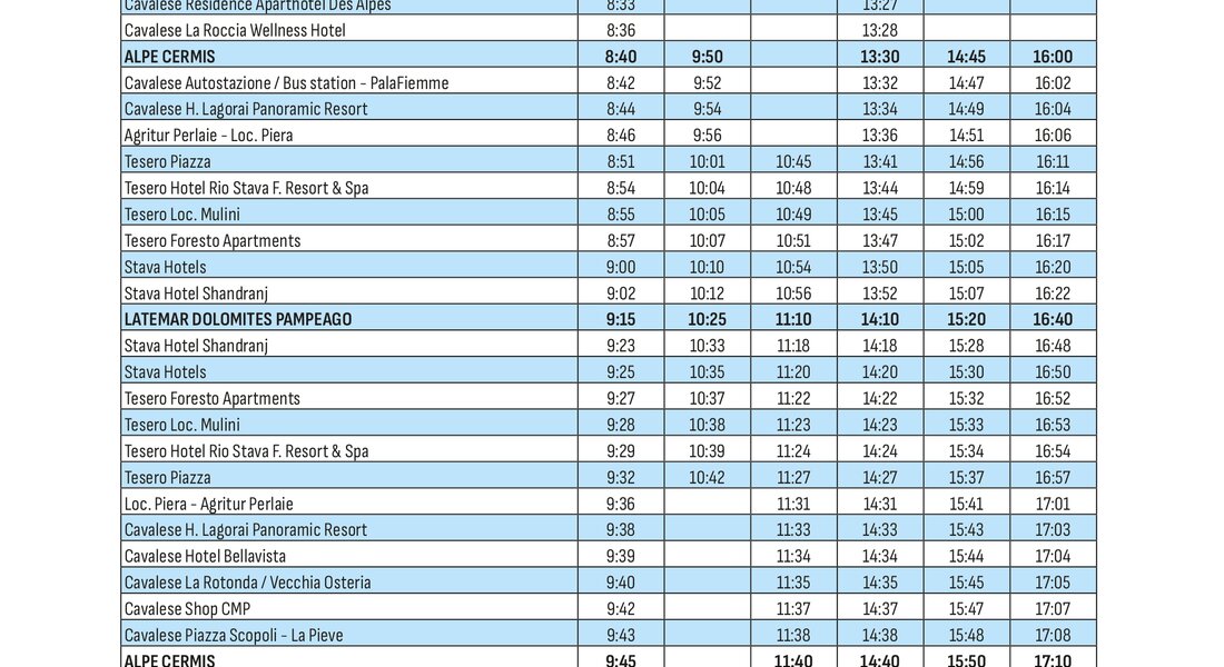 Raggiungi comodamente le piste da sci della Val di Fiemme senza lo stress di cercare un parcheggio e utilizza il servizio skibus che collega i paesi agli impianti sciistici durante tutta la stagione invernale.
