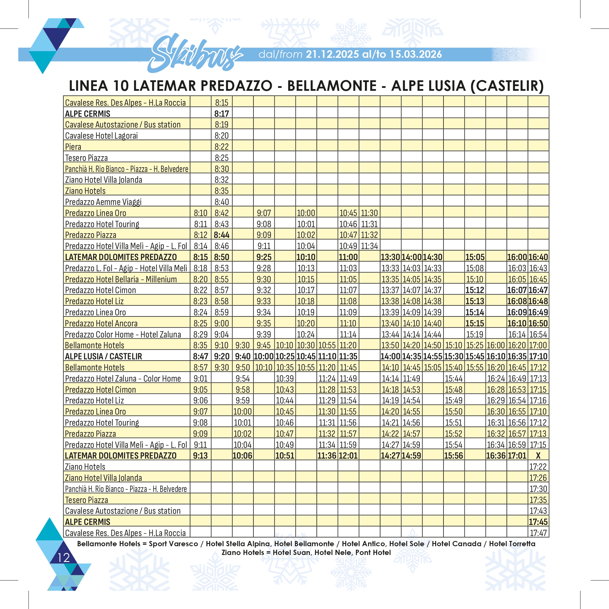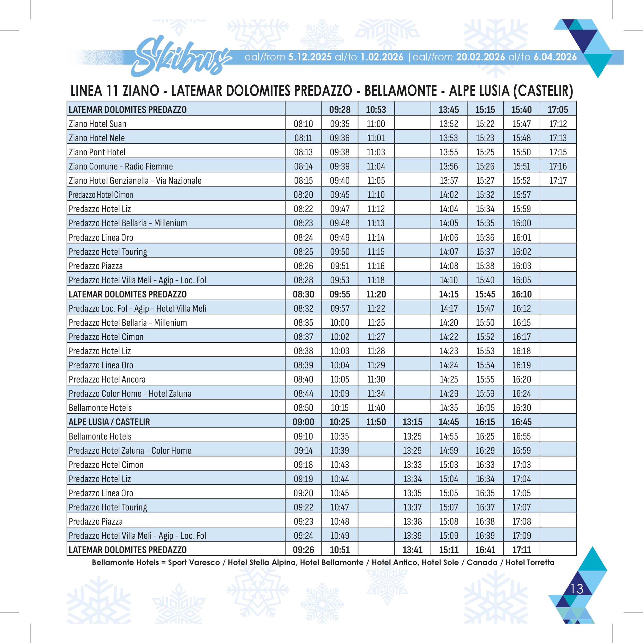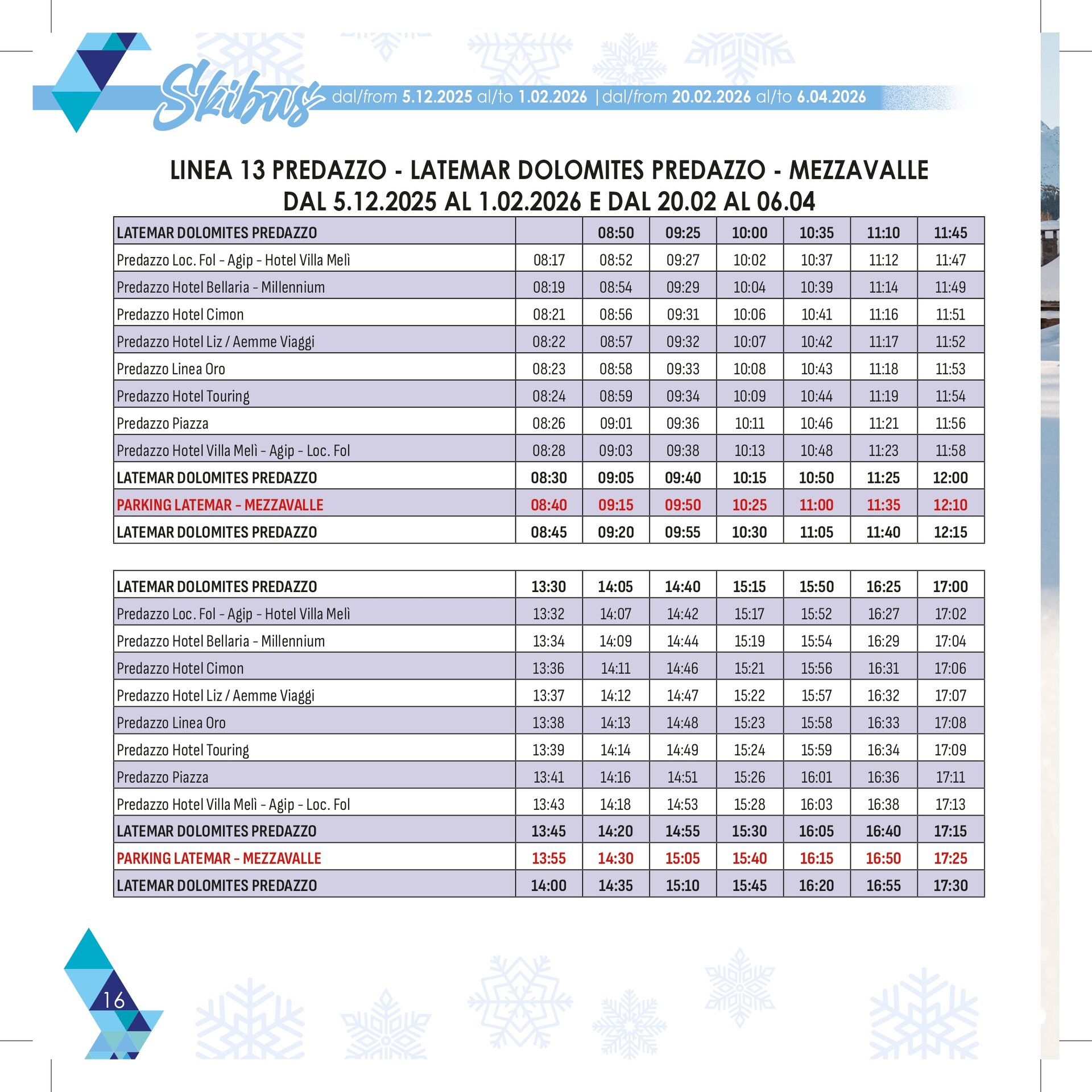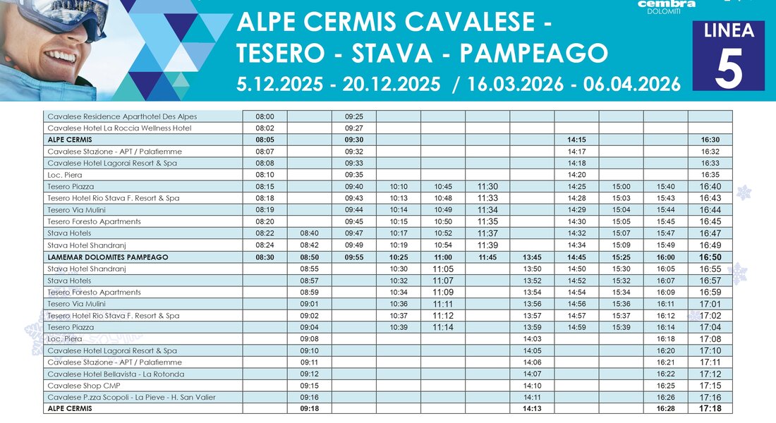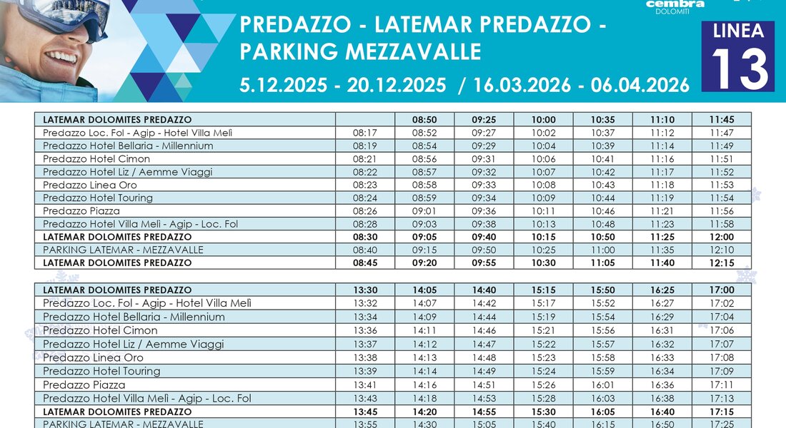 Stagione: 21 dicembre – 15 marzo con 13 linee