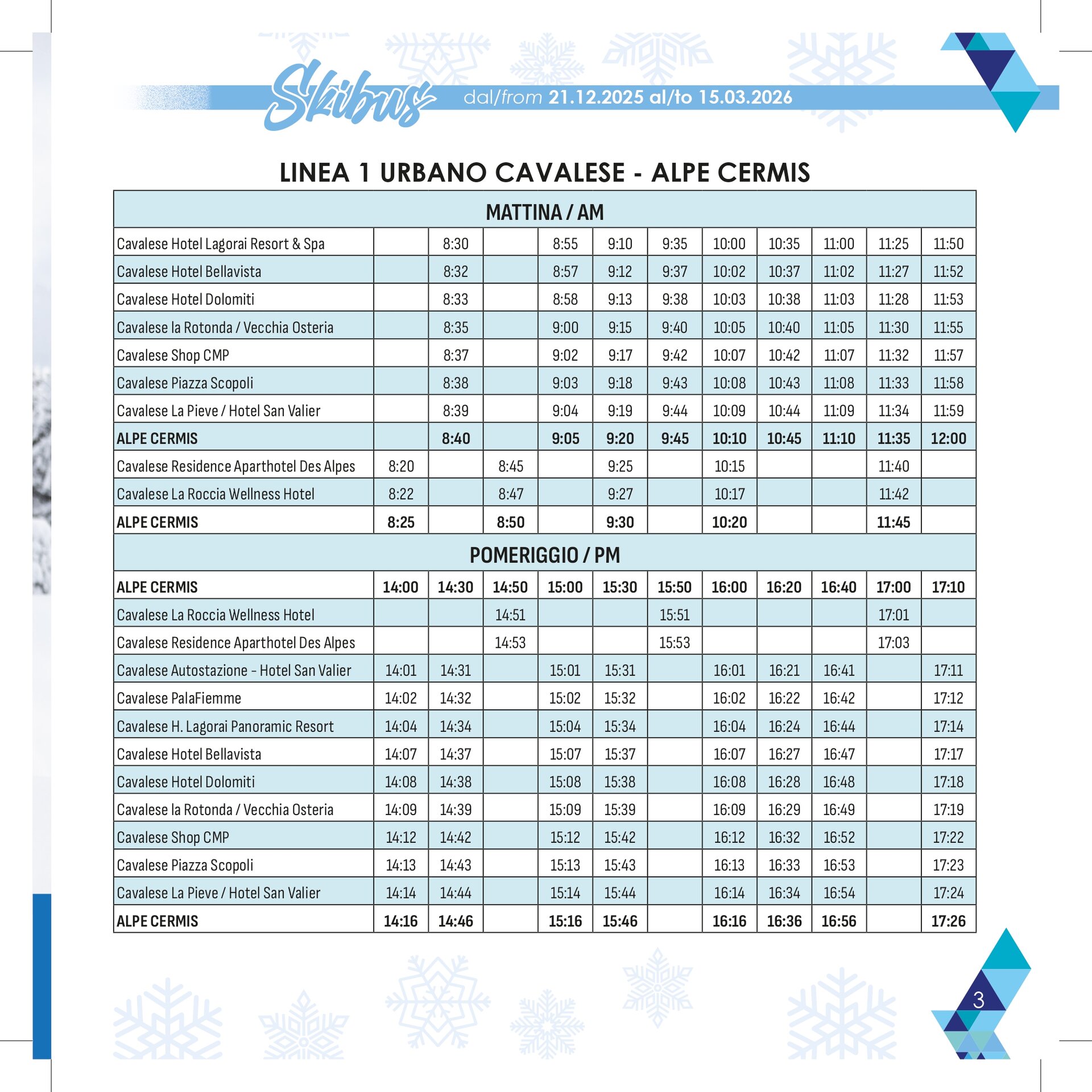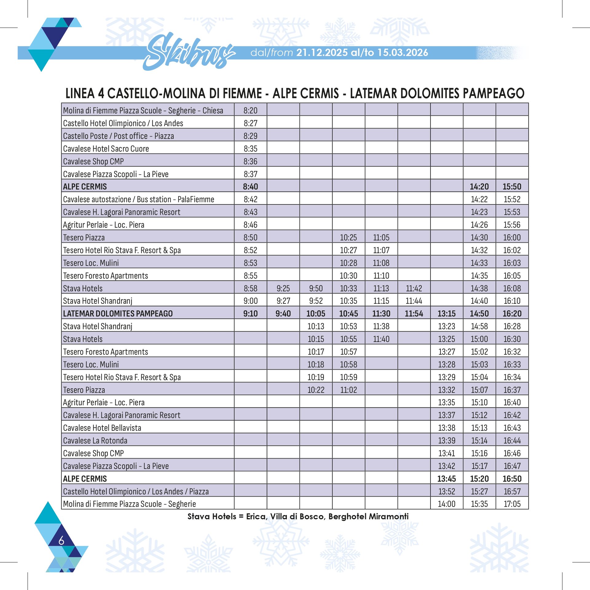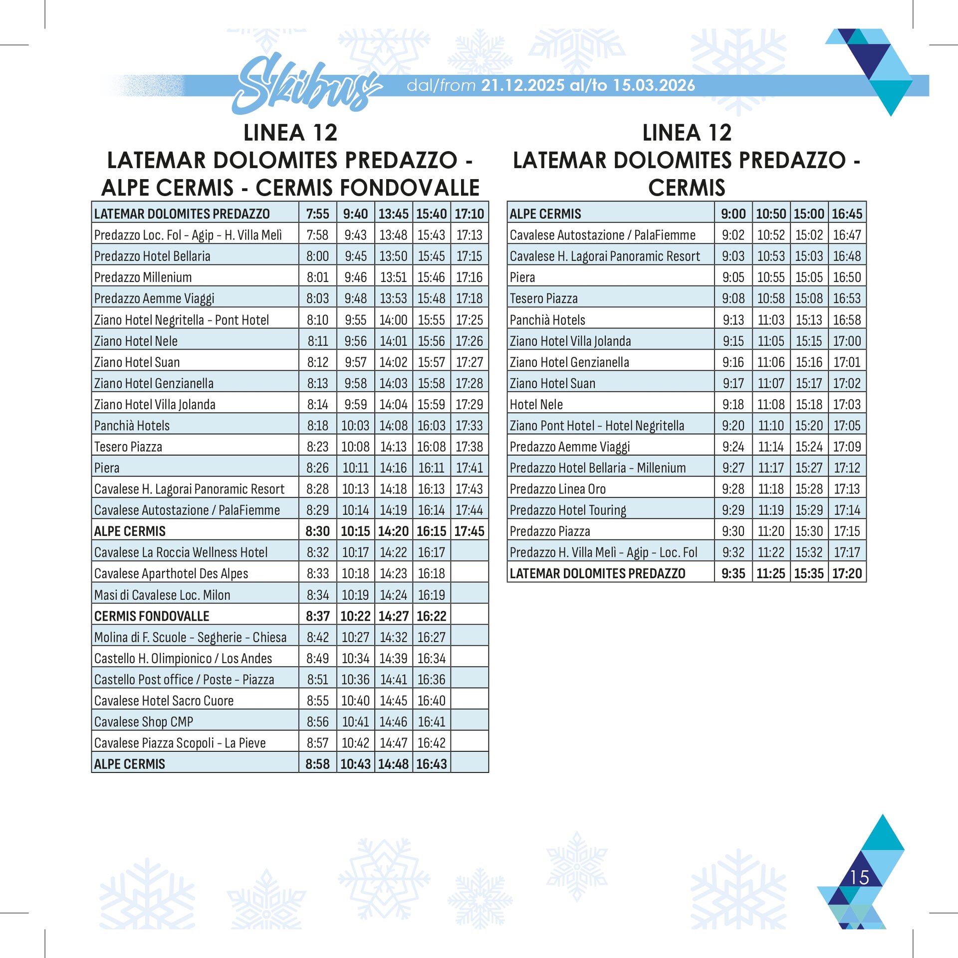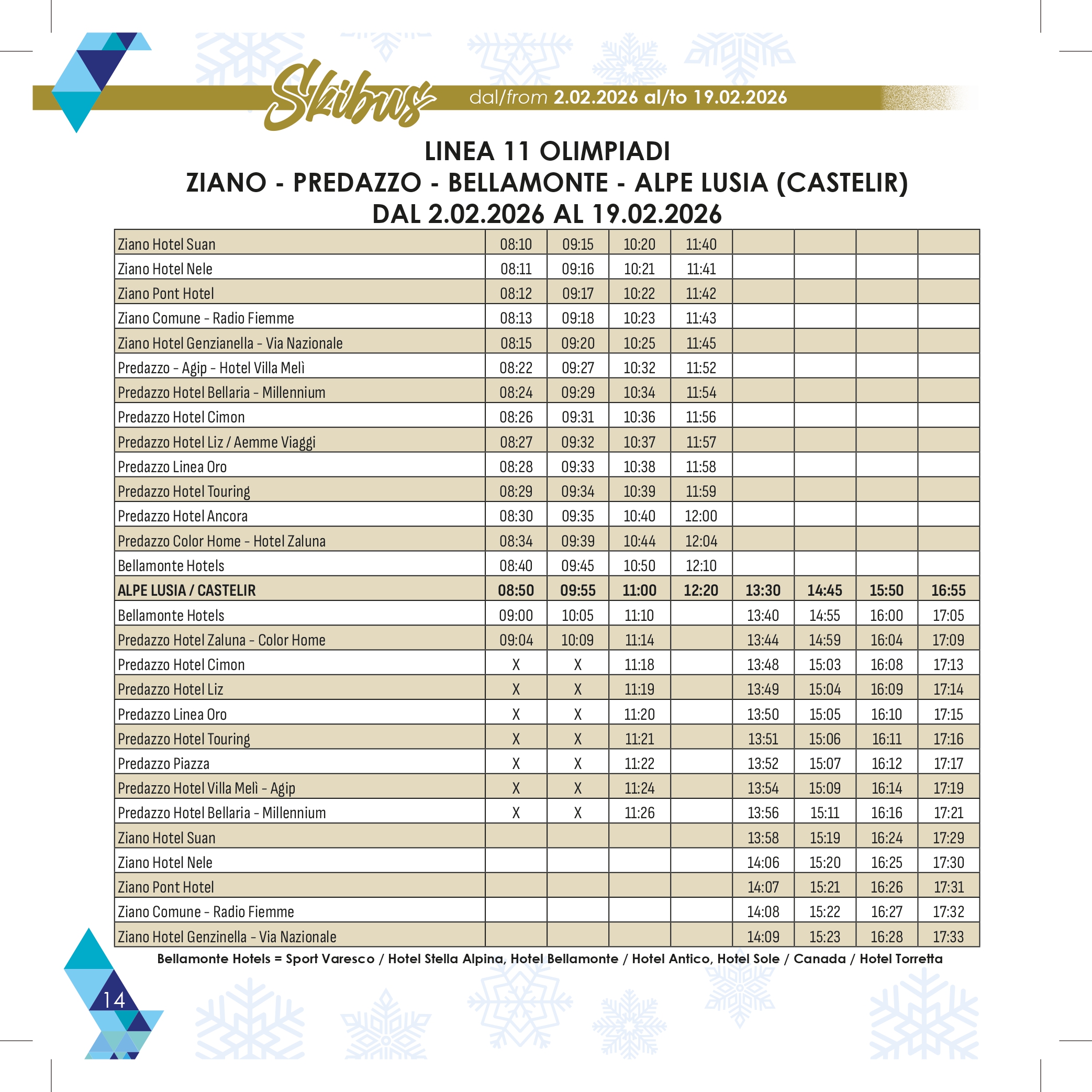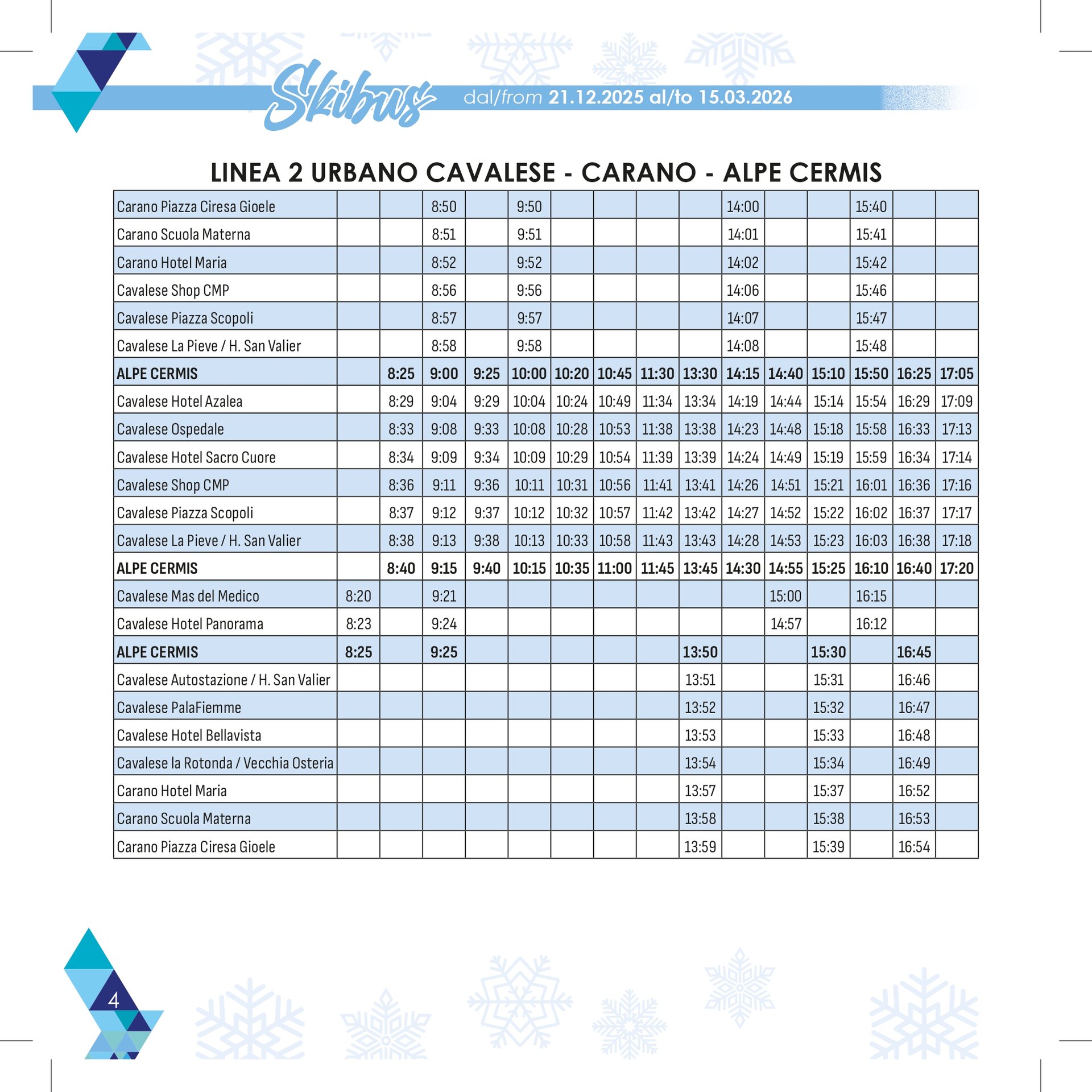 Stagione: 21 dicembre – 15 marzo con 13 linee