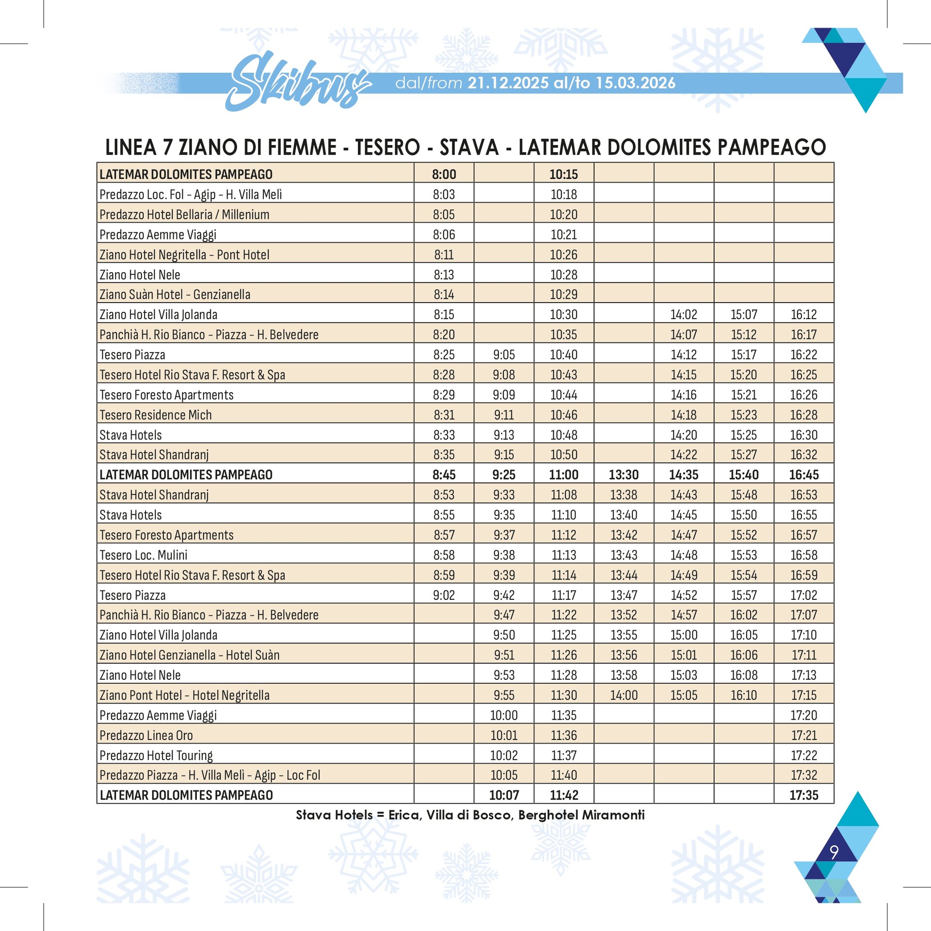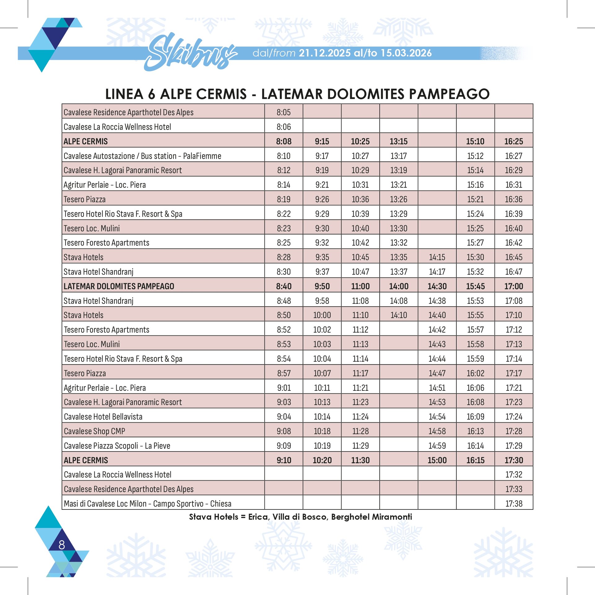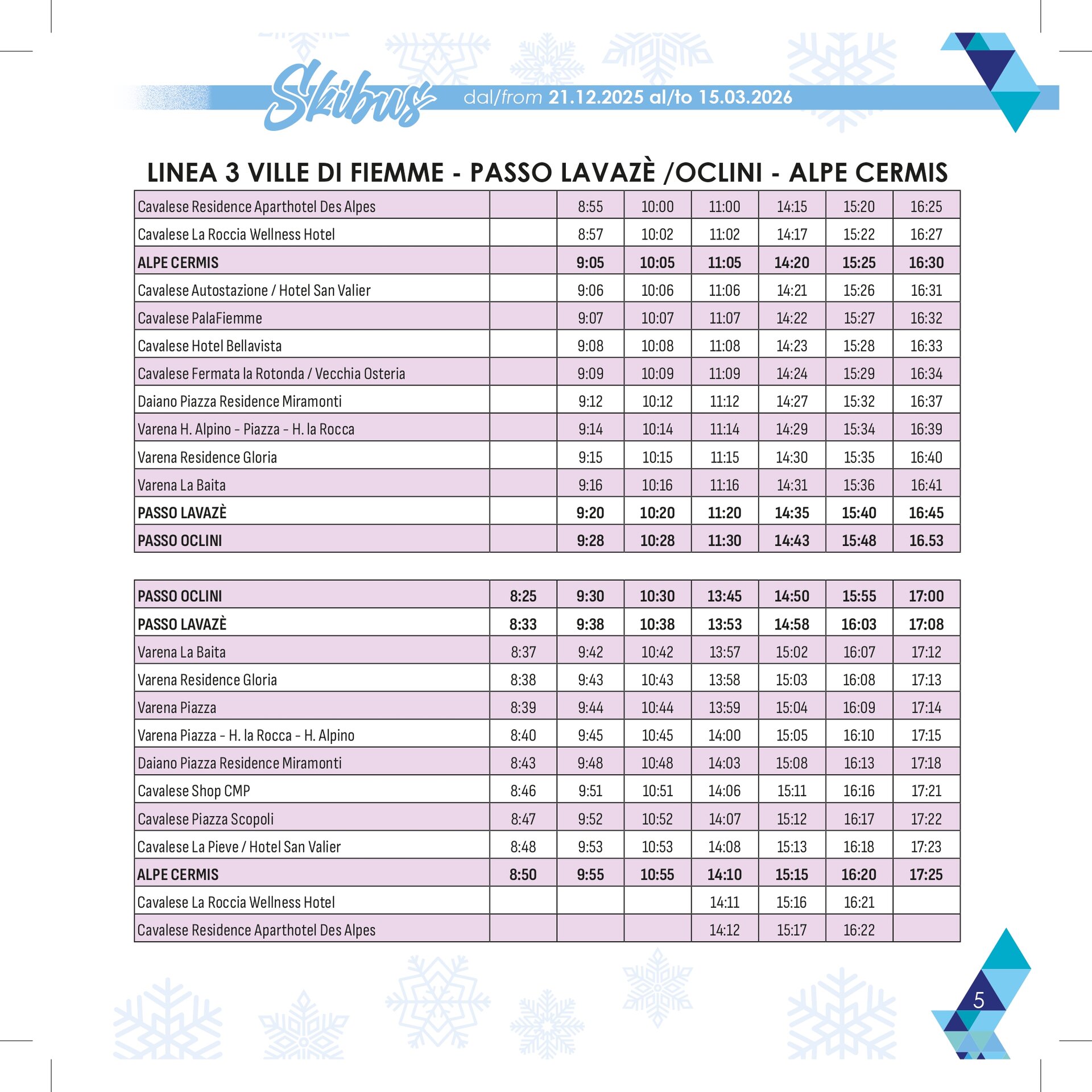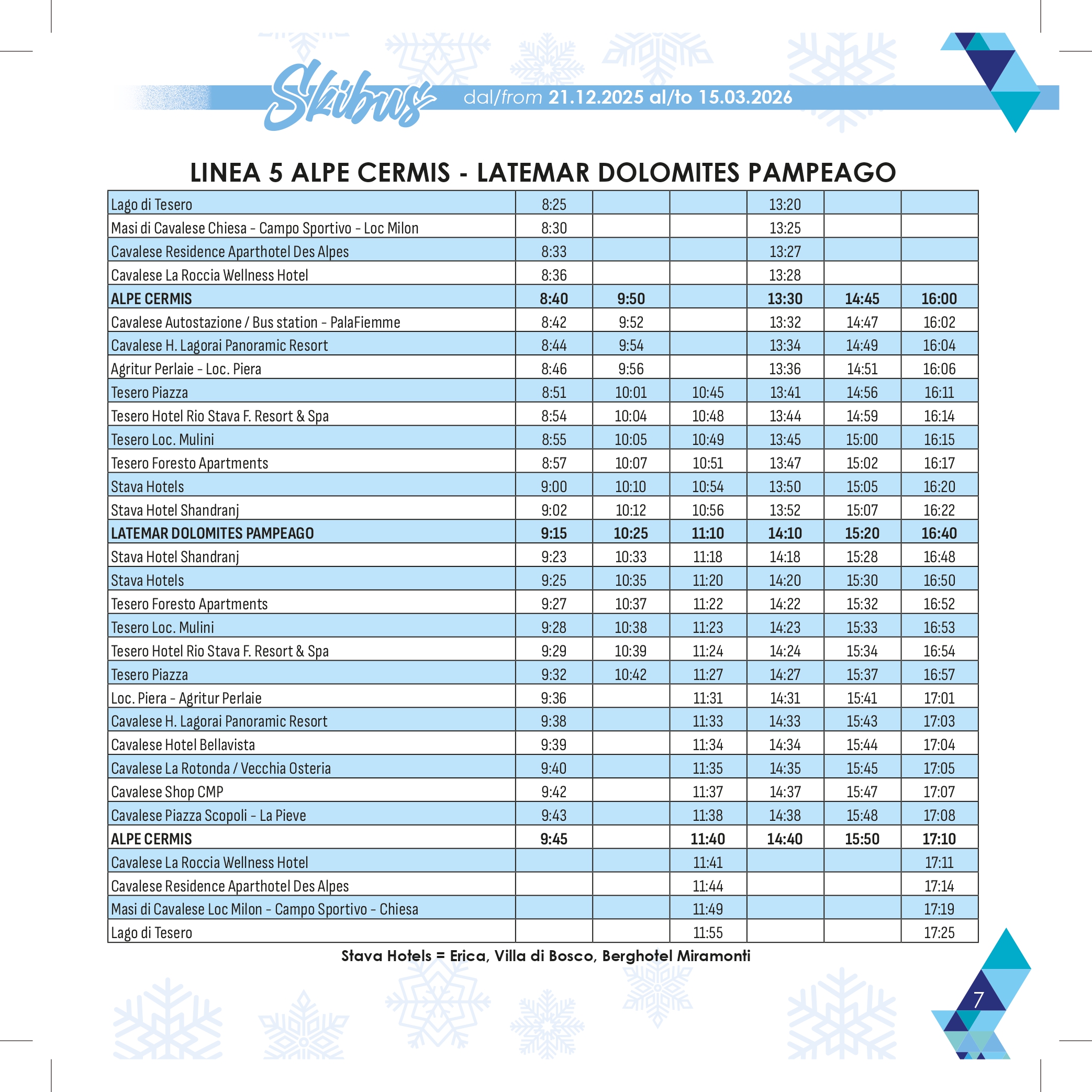 Stagione: 21 dicembre – 15 marzo con 13 linee