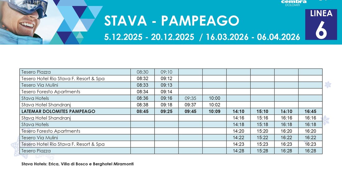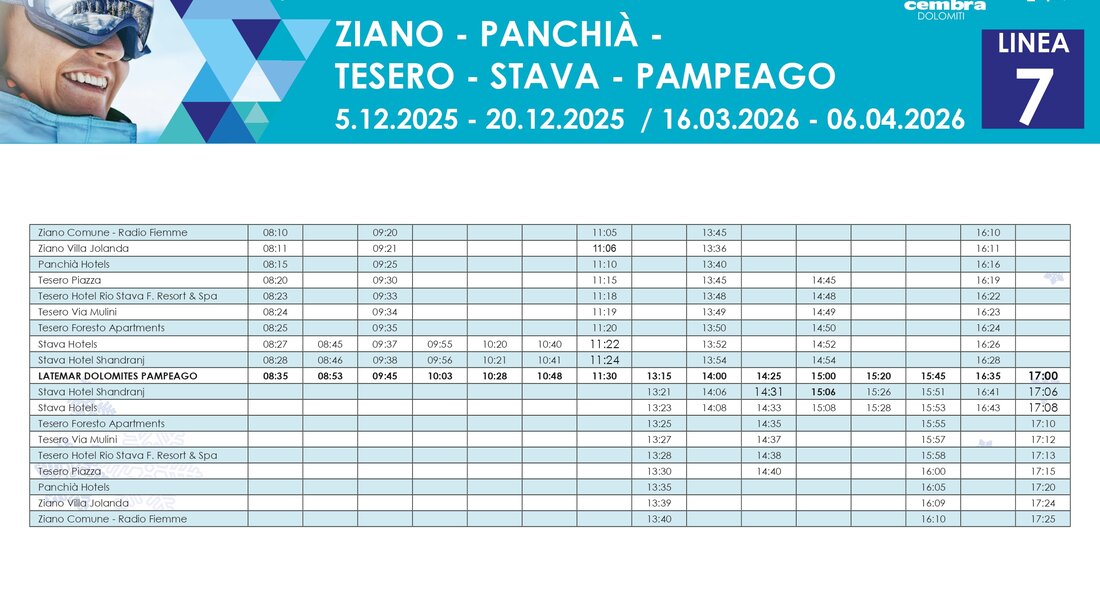 Fine stagione: 16 marzo – 6 aprile 2026 con 7 linee