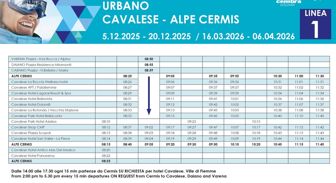 Servizio GRATUITO per i possessori di Fiemme Cembra Guest Card e Trentino Guest Card.