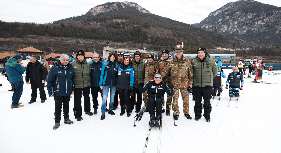 Nella giornata di pausa dei test event pre Paralimpici a Lago di Tesero, organizzati da Fondazione Milano Cortina 2026 col supporto tecnico del comitato Nordic Ski Val di Fiemme, il Ten. Col. Paglia ha voluto appunto accendere i riflettori sullo sci di fondo dei Paralimpici. Alle 9.45 lo start e poi due ore a spinta sorretto dal tifo degli atleti azzurri della nazionale di para-fondo, di tanti militari, di curiosi, anche di un gruppo di paracadutisti della Folgore delle Val di Fassa. A metà del suo impegno è stato affiancato anche da Dorothea Wierer, la campionessa del biathlon in allenamento sulle piste di Lago di Tesero, che lo ha incitato a lungo. Per gran parte della sua azione, il Ten. Col. Paglia è stato scortato dalla Sottosegretaria alla Difesa Senatrice Rauti e dal Maresciallo Riccardo De Vescovi, oltre che dagli atleti della nazionale Paralimpica.